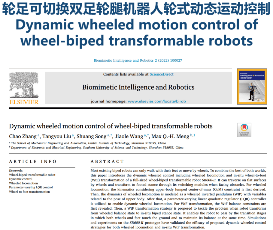 Original paper link: Dynamic wheeled motion control of wheel-biped transformable robots